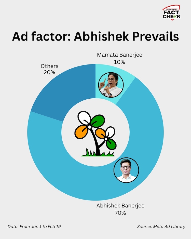 The ads featuring the TMC’s general secretary, Abhishek Banerjee, were boosted — or paid to give it a bigger reach — far more frequently than those featuring his aunt and party supremo, Chief Minister Mamata Banerjee.