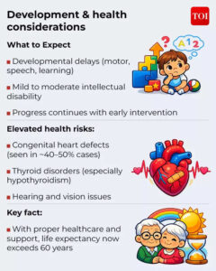 “Early signs of Down syndrome in infants may include certain physical features and developmental delays, such as slower head control or delayed response to stimuli,” explains Dr. Manish Mittal, senior consultant-paediatric.