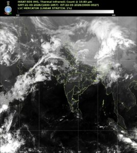 In southern India, dry weather is expected to prevail over Tamil Nadu and Telangana. However, isolated light rainfall may occur over coastal Andhra Pradesh, particularly along the north coast, as well as parts of south coastal Karnataka, south interior Karnataka and Kerala.