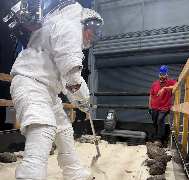 The sessions happen in special facilities with sandy, rocky surfaces designed to mimic the Moon’s dusty ground, called regolith.