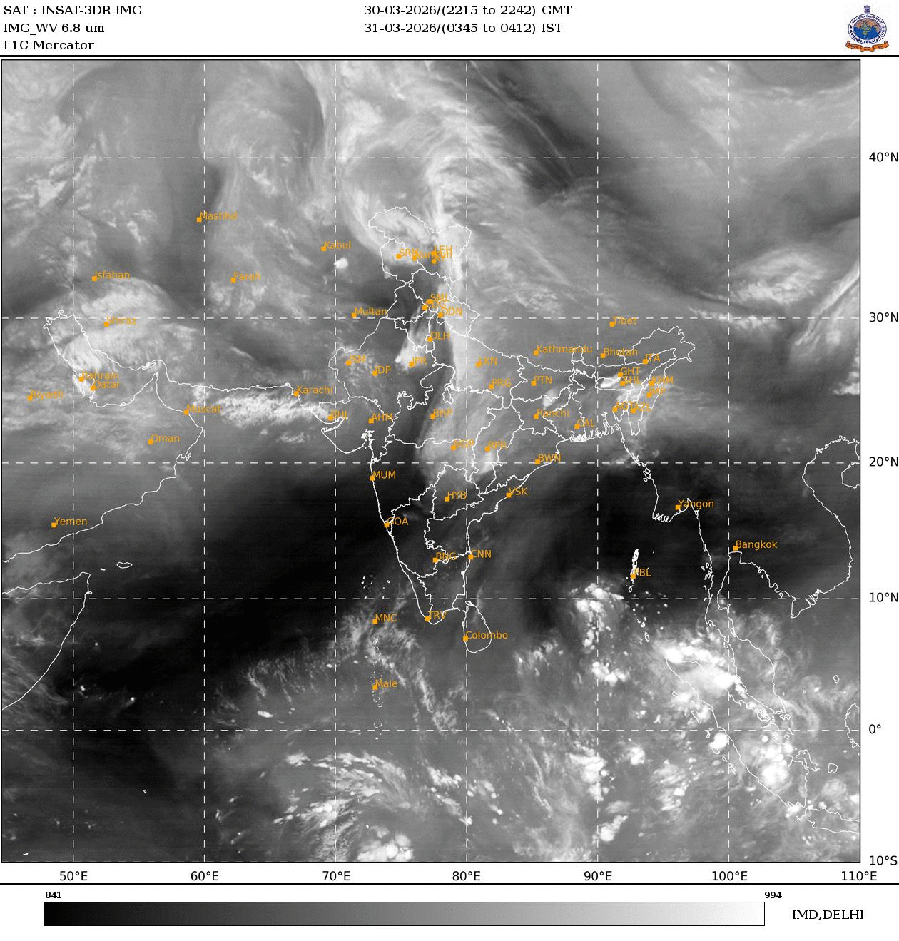 Thunderstorms with gusty winds reaching 30-50 kmph were observed across several regions, including northeast and peninsular India.