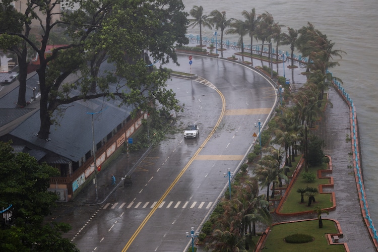 A car moves on a road along the coast while rain pours in Vietnam. (Photo: Reuters)