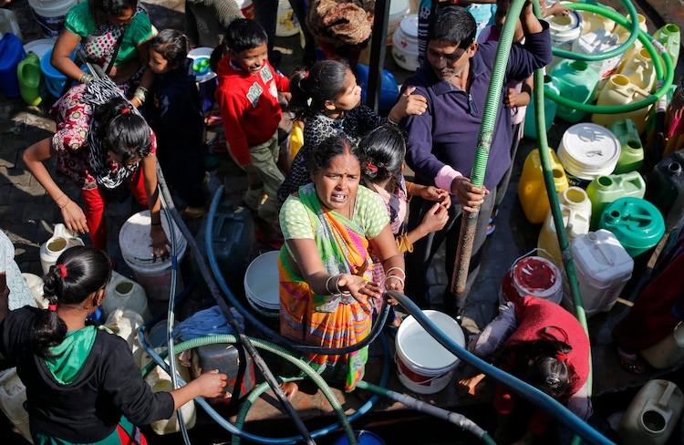 Residents fill their empty containers with water from a municipal tanker in New Delhi. (Photo: Reuters)