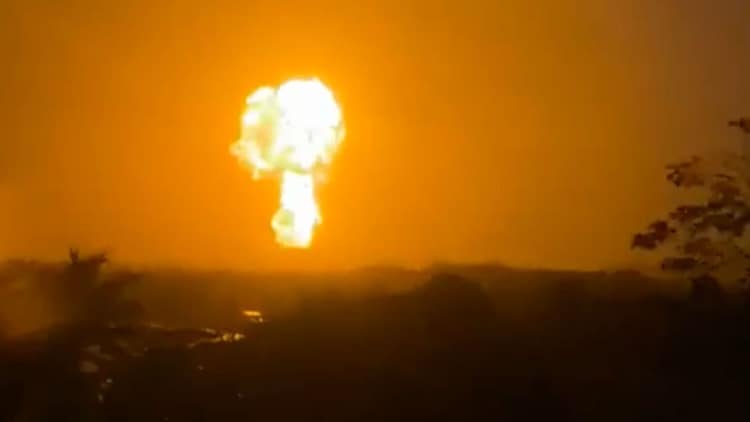 Captured on video, the event started with a massive fireball that lit up the hazy horizon, followed by billowing smoke and ongoing flames.