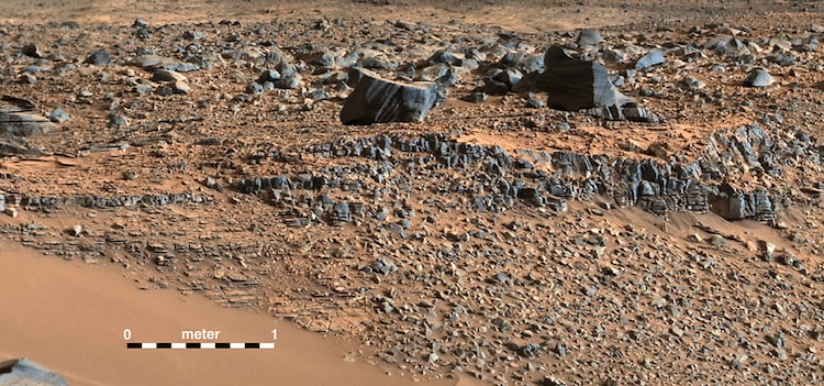 Curiosity discovered bumpy, pea-sized nodules scattered along the walls of ridges and in the sandy hollows between them. These features, scientists believe, were formed by minerals left behind as groundwater dried up billions of years ago.