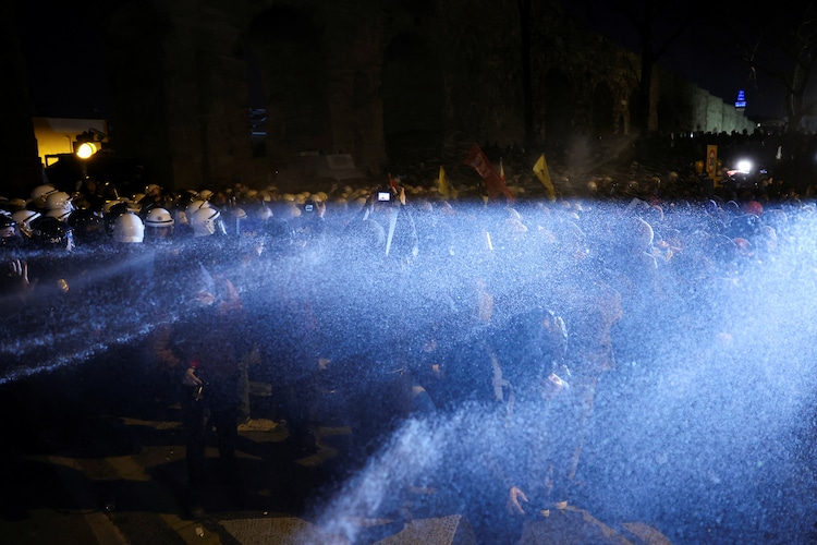 Tear gas usually refers to chemicals like CS (2-chlorobenzalmalononitrile), the most common today, often fired from exploding canisters or mixed into water cannons.