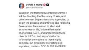 The seeds of this moment were planted in February, when Trump took to Truth Social to order the Department of War to begin identifying and declassifying files on Unidentified Anomalous Phenomena, or UAPs.