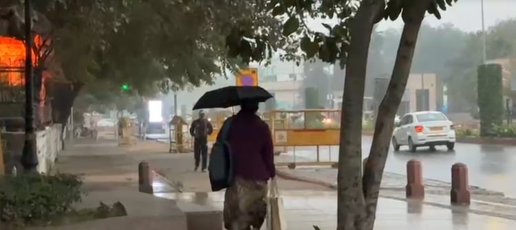 A woman walks with an umbrella amid rain in Delhi. (Photo: Screengrab)