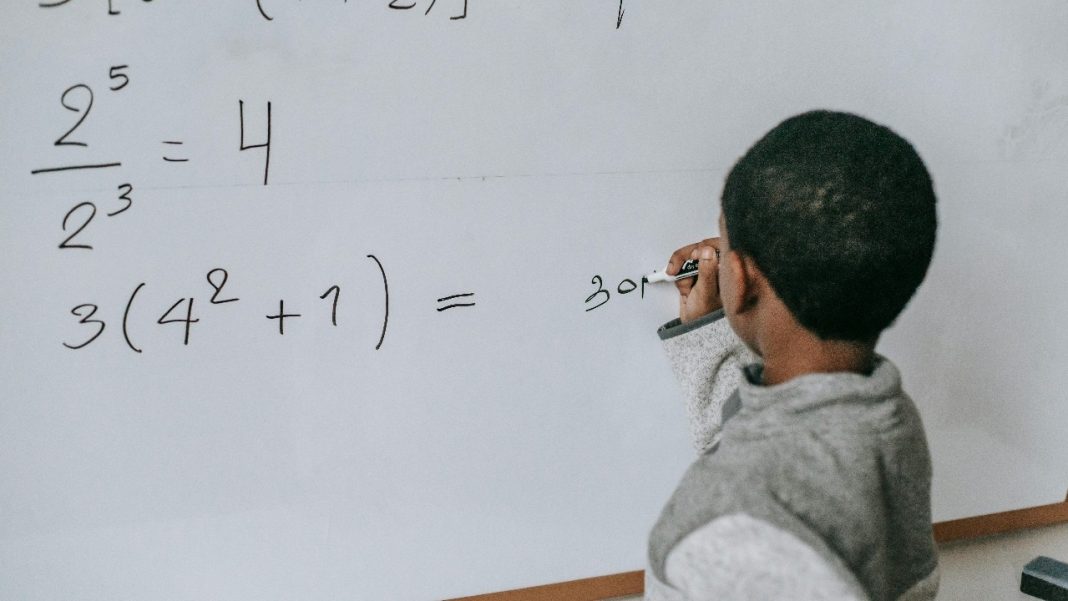 A hand writing a mathematical equation on a whiteboard with a marker. (Photo: Pexels)