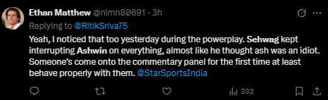 Fans were particularly unhappy with one incident that has since gone viral. Allegedly during the match, Sehwag asked Ashwin to use a little less of his brain while commentating. What initially passed off as banter turned into awkward silence when Sehwag stretched the matter further than necessary.