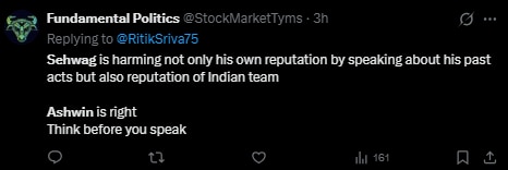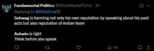 The former India off-spinner, known for his wit, did not take it lying down and continued the exchange. Things went slightly overboard when Sehwag allegedly took another dig at Ashwin, suggesting that one should not analyse the game too much on the commentary panel.