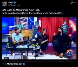 Earlier in the tournament, Amir had said that Pakistan might or might not qualify, but India would definitely not make it to the top four. “Pakistan will qualify. Dekho, Pakistan kare na kare, India naaaa (It doesn’t matter if Pakistan qualifies or not, India will not),” he said on Haarna Mana Hai, leaving even the show’s anchor surprised.