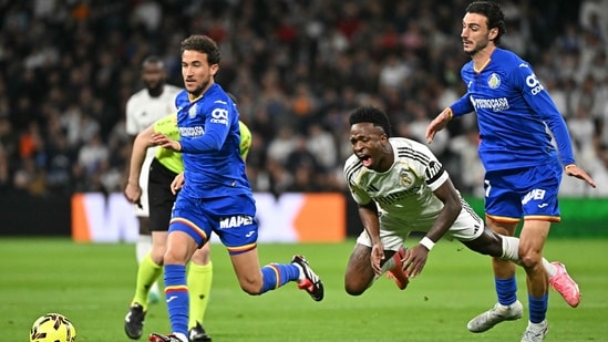 Soria, who had a fine game, saved from Vinicius in the second half and the Brazilian called for more support from Madrid’s fans.