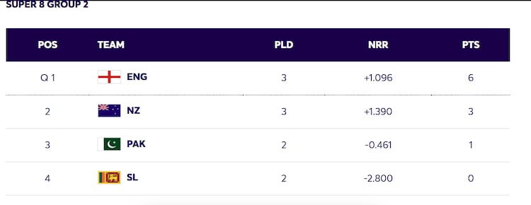 Meanwhile, New Zealand sit second with three points from as many matches and possess a healthy net run rate of +1.390. Pakistan, placed third on the table with one point from two matches and a net run rate of -0.461, still have a great chance of qualifying.