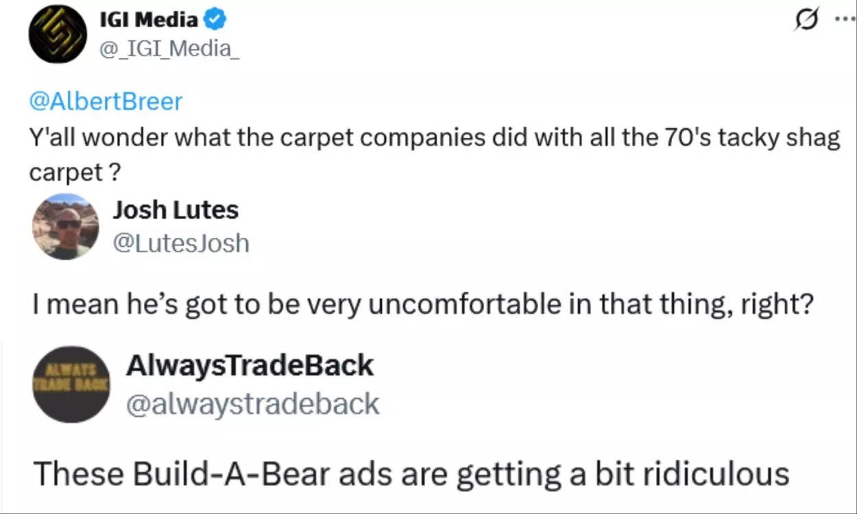 A third user wrote, “Y’all wonder what the carpet companies did with all the 70’s tacky shag carpet?” while another one said, “I mean he’s got to be very uncomfortable in that thing, right?” A final user said, “These Build-A-Bear ads are getting a bit ridiculous..”