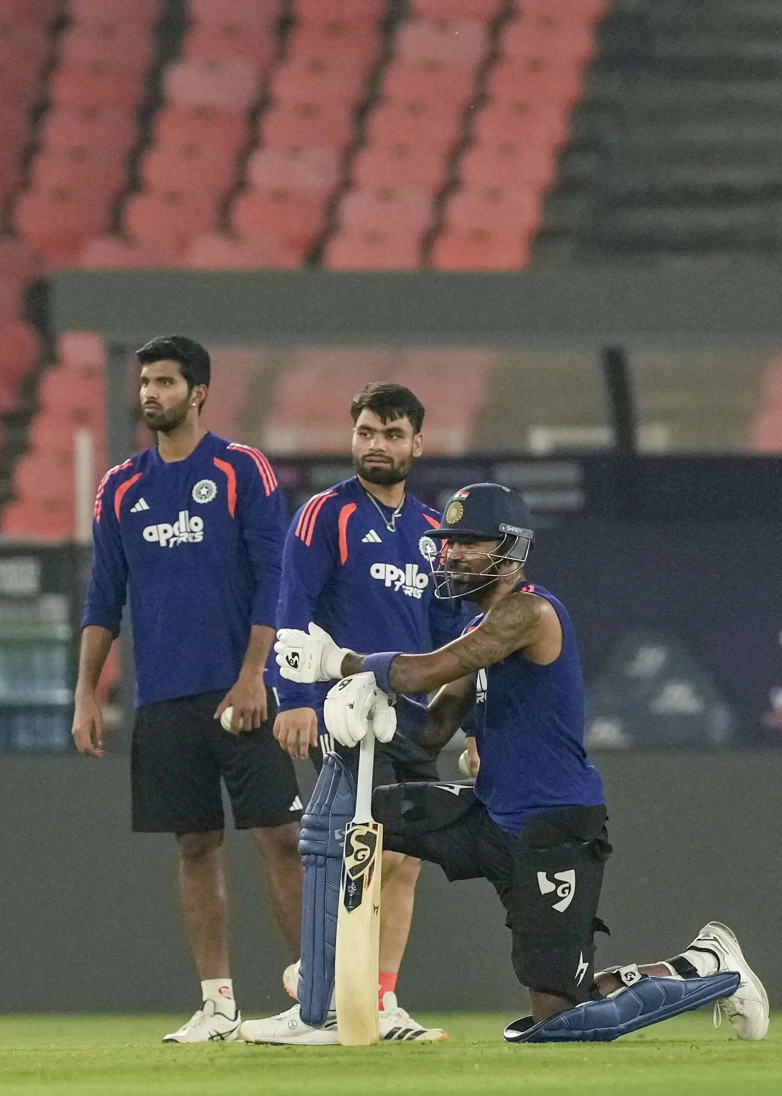 The ring of fire was lit in its full glory and shouts of “Watch out! Mind!” reverberated in the empty stands as a barrage of sixes were launched by the India batters, Hardik Pandya in particular. The right-hander switched nets and partners but looked to go big almost every delivery. The onslaught began against the Indian squad’s spinners, continued against the seamers, and concluded with the destruction of everything net bowlers and side-armers sent his way during the marathon two-hour hitting session.