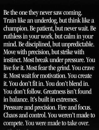 “Be the one they never saw coming. Train like an underdog, but think like a champion. Be patient, but never wait. Be ruthless in your work, but calm in your mind. Be disciplined, but unpredictable. Move with precision, but strike with instinct. Most break under pressure. You live for it. Most fear the grind. You crave it. Most wait for motivation. You create it. You don’t fit in. You don’t blend in. You don’t follow. Greatness isn’t found in balance. It’s built in extremes. Pressure and precision. Fire and focus. Chaos and control. You weren’t made to compete. You were made to take over,” the former QB wrote.