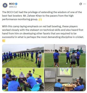 “The BCCI CoE had the privilege of extending the wisdom of one of the best fast bowlers, Mr. Zaheer Khan to the pacers from the high performance monitoring group,” the BCCI said in a post on X.