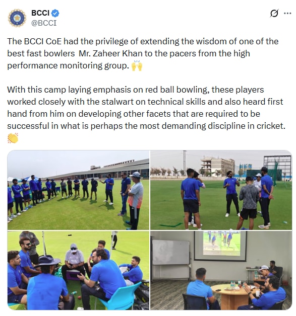 “The BCCI CoE had the privilege of extending the wisdom of one of the best fast bowlers, Mr. Zaheer Khan to the pacers from the high performance monitoring group,” the BCCI said in a post on X.