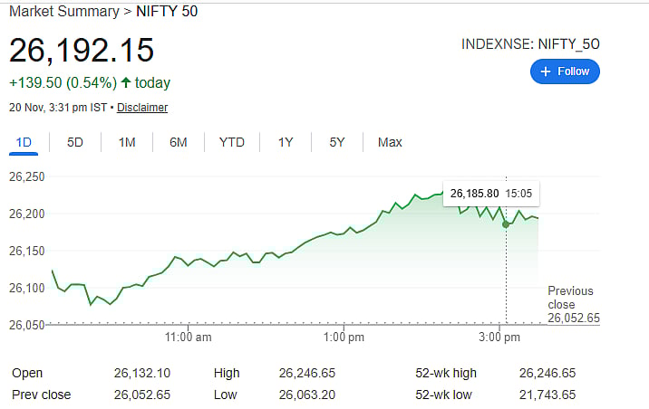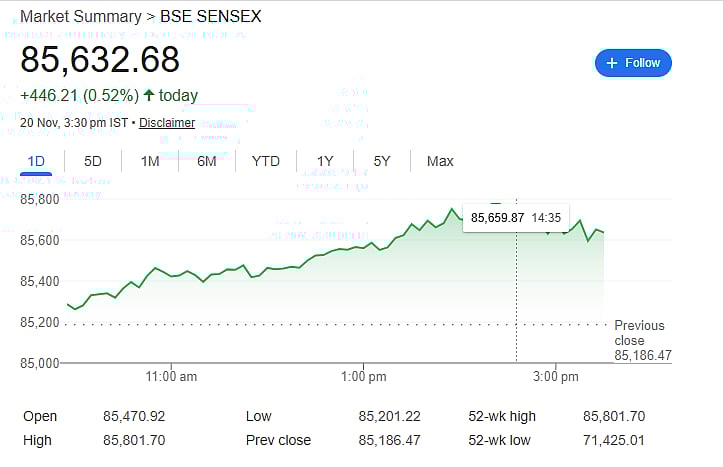 - Sensex surged 446 points to 85,632, Nifty jumped 140 points to 26,192