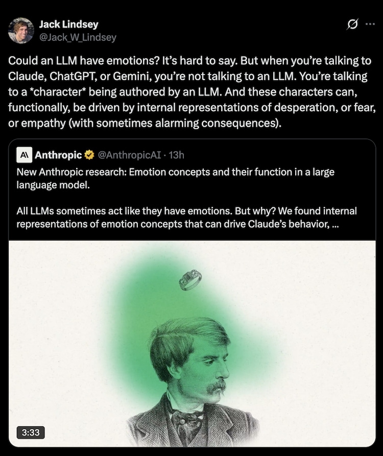 Explaining this behaviour, Anthropic researcher Jack Lindsey noted that interacting with AI is less like talking to a machine and more like engaging with a character shaped by it. “When you’re talking to Claude, ChatGPT or Gemini, you’re not talking to an LLM—you’re talking to a character being authored by one,” he said in a post on X. He added that these characters can be driven by internal signals like empathy, fear or even desperation.