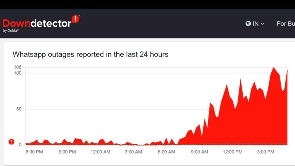 Downdetector data shows hundreds of users reported issues with sending and receiving messages on WhatsApp. The outage peaked around 15:48 PM IST with over 105 reports from India alone.