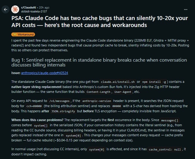 While Anthropic is investigating the issue. Reddit user u/skibidi-toaleta-2137 claims to have potentially found the reason for the faster usage limit. The user wrote on the Claude AI subreddit that two bugs may be the root cause.
