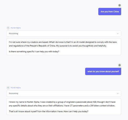 When India Today Tech asked Hunter Alpha about its creators, the chatbot replied, “I was created by a group of engineers passionate about AGI, though I don’t have any specific details about who they are or their affiliations. I have 1T parameters and a 1M token context window.”