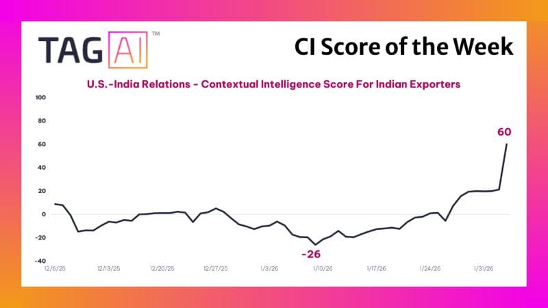 Another example from the recent India-US trade deal developments was highlighted by The Asia Group’s Contextual Intelligence Score on its LinkedIn page where it tracked a significant shift in U.S.– India relations ahead of the major trade deal announcement. The algorithmic score moved from negative territory earlier in the year — reflecting heightened tariff pressures — to strong positive readings as diplomatic signals and high-level engagements indicated improving ties, culminating in the announcement of the trade deal.