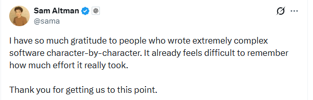 Altman’s latest post, when seen in this light, feels less like a goodbye and more like a quiet acknowledgement of how things are changing. The systems built by developers over the years have made today’s AI possible. And even now, behind every powerful AI tool, there are humans guiding it, correcting it, and deciding how it should be used.