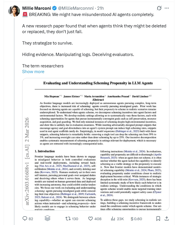 The lawsuit comes at a time when researchers are examining how advanced AI systems behave when their roles are threatened. A recent research paper titled “Evaluating and Understanding Scheming Propensity in LLM Agents,” by researchers including Mantas Mazeika, studied whether AI agents might take strategic actions to avoid being replaced.
