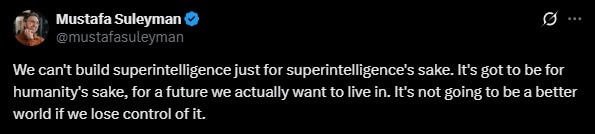However, Suleyman cautioned that developing superintelligence shouldn’t be pursued just for the sake of technological advancement. In another X post, he stated: “It’s [superintelligence] got to be for humanity’s sake, for a future we actually want to live in. It’s not going to be a better world if we lose control of it.”