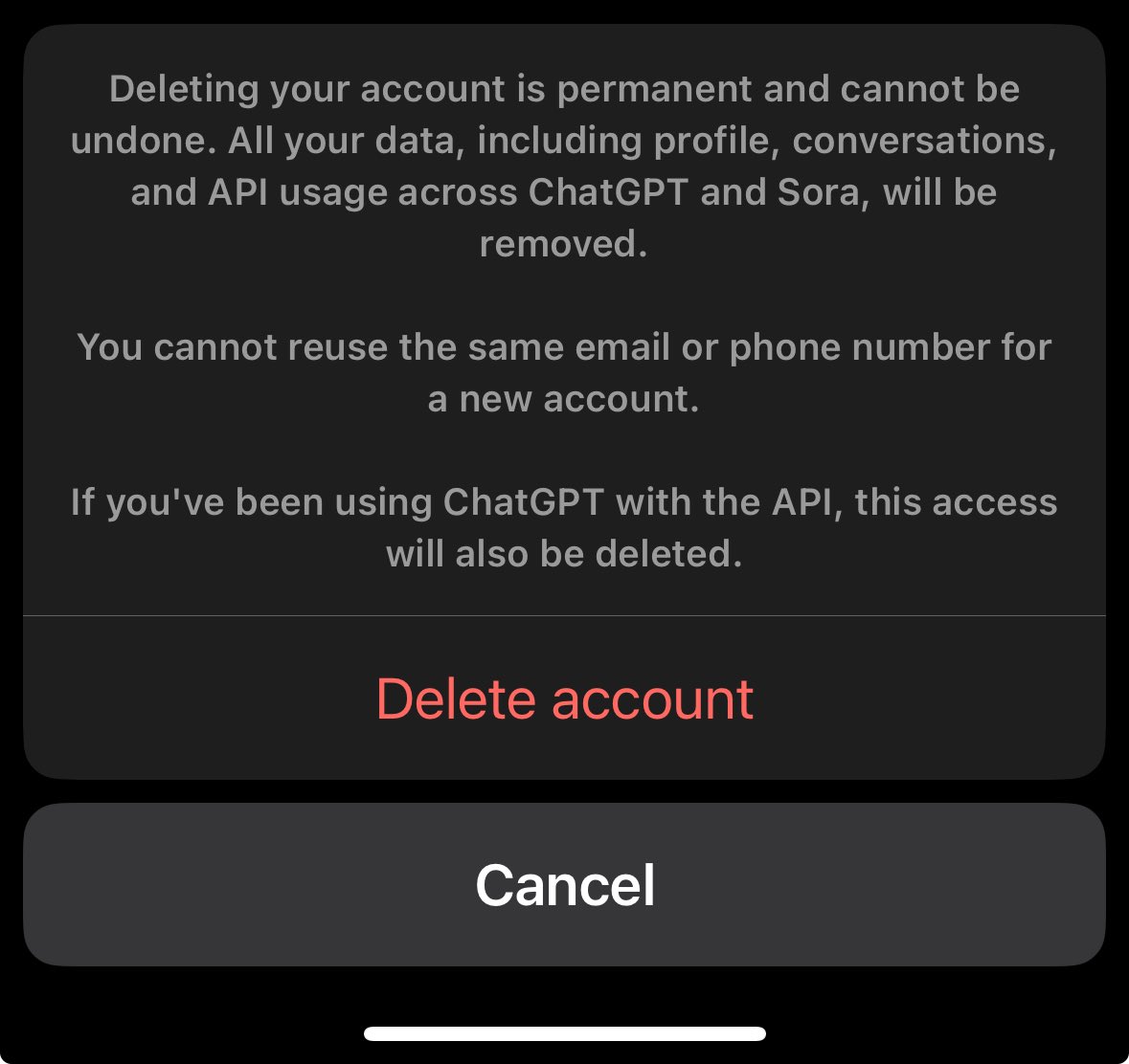 On a related note. If you delete your Sora app account, it’ll be a permanent thing in this lifetime, and you’ll be barred from signing up again using the same email or phone number. God forbid you use the same login on ChatGPT as well, that’ll be gone too. In an instant. What a crushing blow for humanity. Or a sign that you shouldn’t sign up in the first place?