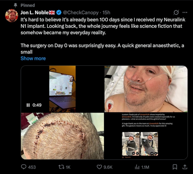 British army veteran Jon L. Noble has successfully completed 100 days with Neuralink N1 marking a significant milestone in the integration of brain-computer interface technology into daily life. In an inspiring post on X, the platform previously known as Twitter, Noble who is among a select few – patient number 18 to be more specific – to have received the implant said the treatment has given him a new way to live so much so that he can’t imagine life without it now. He is paralysed below the neck following a C4 spinal injury.