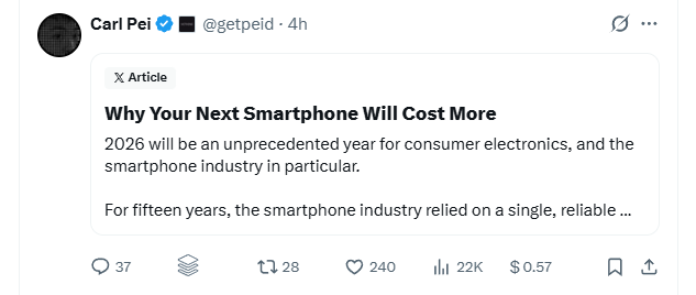 - Nothing CEO Carl Pei warns smartphone prices will rise significantly in 2026.