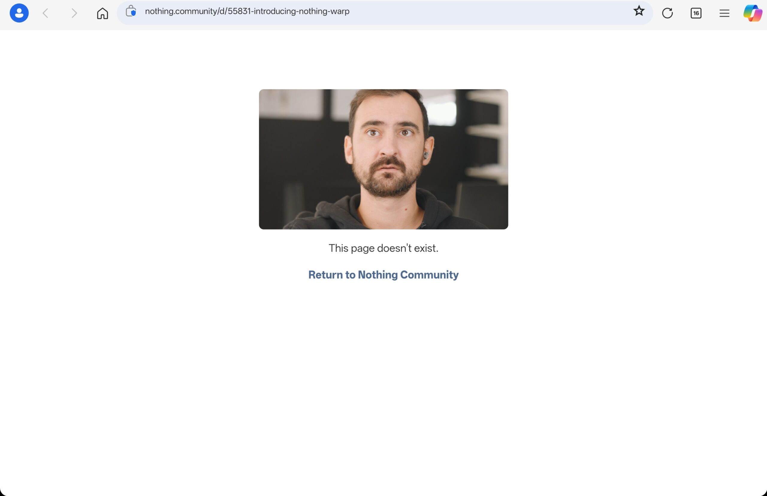 Upon opening the Nothing announcement post, one is greeted with an error message reading ‘This page doesn’t exist.’ along with a picture of co-founder Akis Evangelis. While clicking on the Chrome extension link returns the message, ‘This item is not available’.