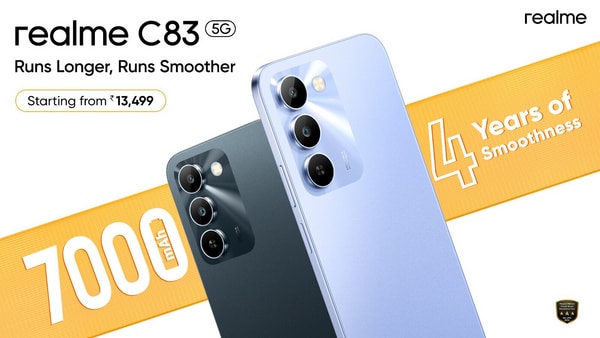 Realme has launched its latest budget phone, the C83 5G, in India with a massive 7000mAh battery and the MediaTek Dimensity 6300 processor. The phone comes in the sub- ₹15,000 price point where it will take on the likes of iQOO Z10x, Poco M7 Pro , and Motorola G35.