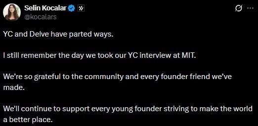 Selin Kocalar confirmed that Delve was no longer part of YC in a post on X.
