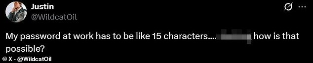 Another shocked user asked: “My password at work has to be like 15 characters… how is that possible?” while a third joked: “not even L0uvr3! ?”