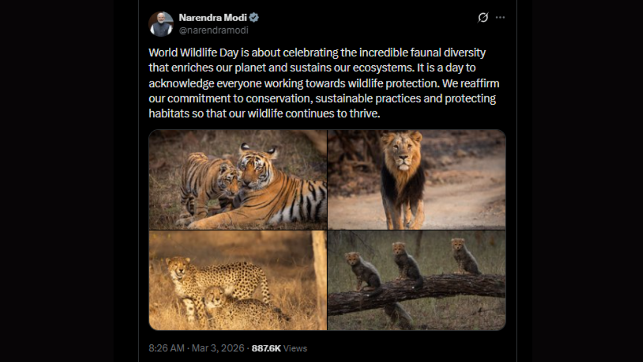 Prime Minister Narendra Modi echoed the sentiment, and shared on X, “World Wildlife Day is about celebrating the incredible faunal diversity that enriches our planet and sustains our ecosystems. It is a day to acknowledge everyone working towards wildlife protection. We reaffirm our commitment to conservation, sustainable practices and protecting habitats so that our wildlife continues to thrive.”