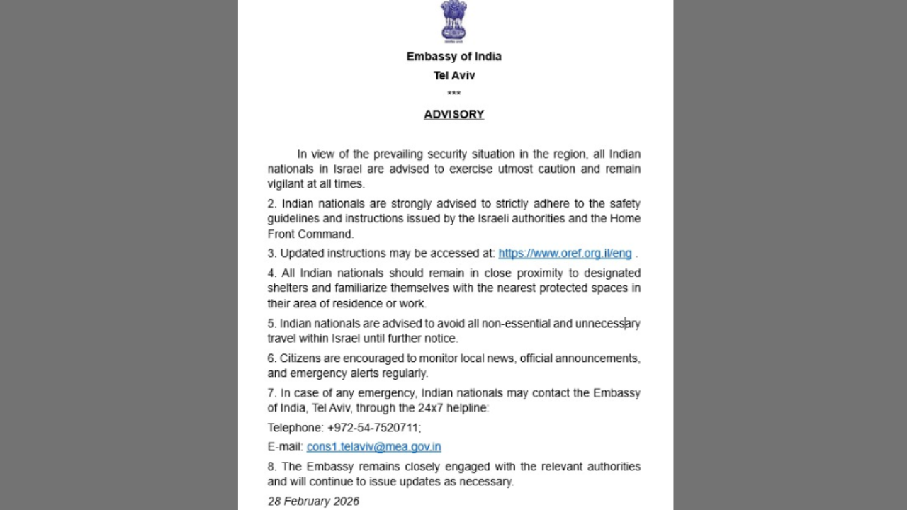 The official advisory reads, “All foreign nationals in India, who have had to change their travel plans due to the ongoing developments in the West Asia region and need assistance with extension of their visa or to regularize their stay, are requested to contact the nearest Foreigners Regional Registration Office (FRRO). The FRRO concerned will help with necessary formalities. For contact details of FRRO, you may visit https://boi.gov.in/boi/”