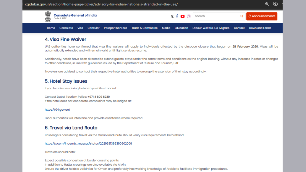The Consulate General of India, Dubai has released an advisory to Indian citizens stranded in the UAE as flights remain affected due to the prevailing situation in the region and restrictions on airspace. Find the official advisory here.