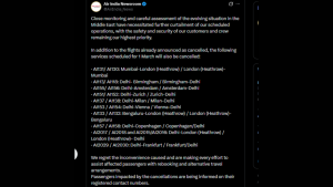 Full list of Air India flight cancellations on March 1 amid airspace tensions