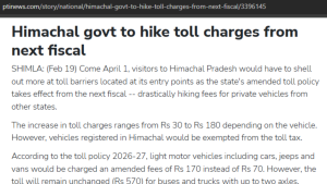 Entry into Himachal to get costlier from April 1 with revised toll rates; check entry points and new charges