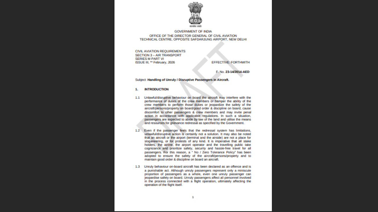 The updated Civil Aviation Requirement (CAR), issued under Rule 22, Rule 23, Rule 29 and Rule 133A of the Aircraft Rules, lays down detailed procedures for airlines, airport operators and passengers to ensure safety, discipline and order during air travel.