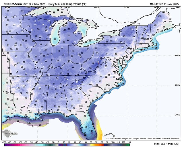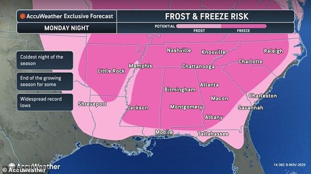 - The cold will stretch from the Plains to the East Coast, with the South experiencing freezing conditions.