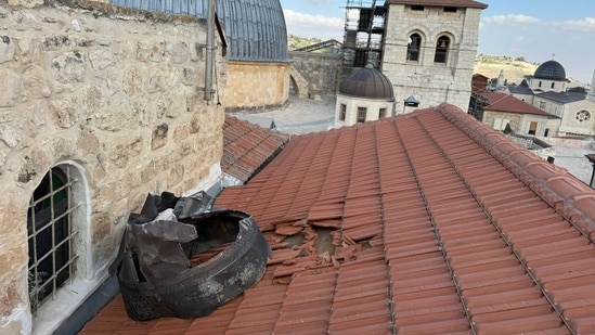 A photo shared along with a social media post, posed by Israel, showed what appeared to be a large metal ring, believed to be part of a missile landed at the roof of a structure adjacent to the Holy Sepulchre, the traditional site of Jesus’ crucifixion and burial.