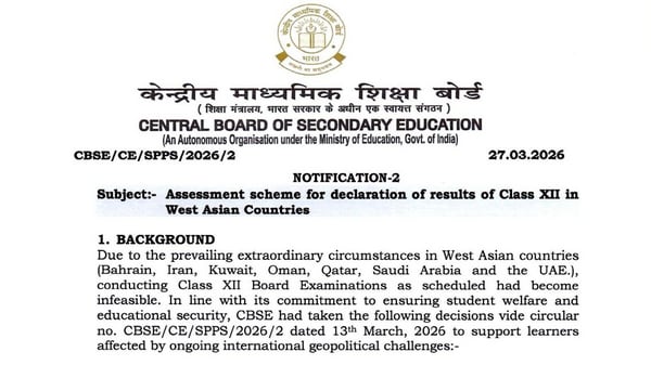 The Central Board of Secondary Education (CBSE), on Friday issued another notification outlining the alternative assessment scheme for declaration of Class XII results in West Asian countries such as Bahrain, Iran, Kuwait, Oman, Qatar, Saudi Arabia and the UAE.
