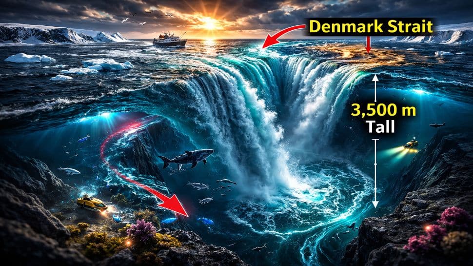 New Delhi: When people think of the world’s largest waterfall, they often imagine towering cascades like Niagara or Victoria Falls. However, the biggest waterfall on earth is not on land. It is hidden deep beneath the ocean surface. This natural phenomenon is known as the Denmark Strait Cataract.