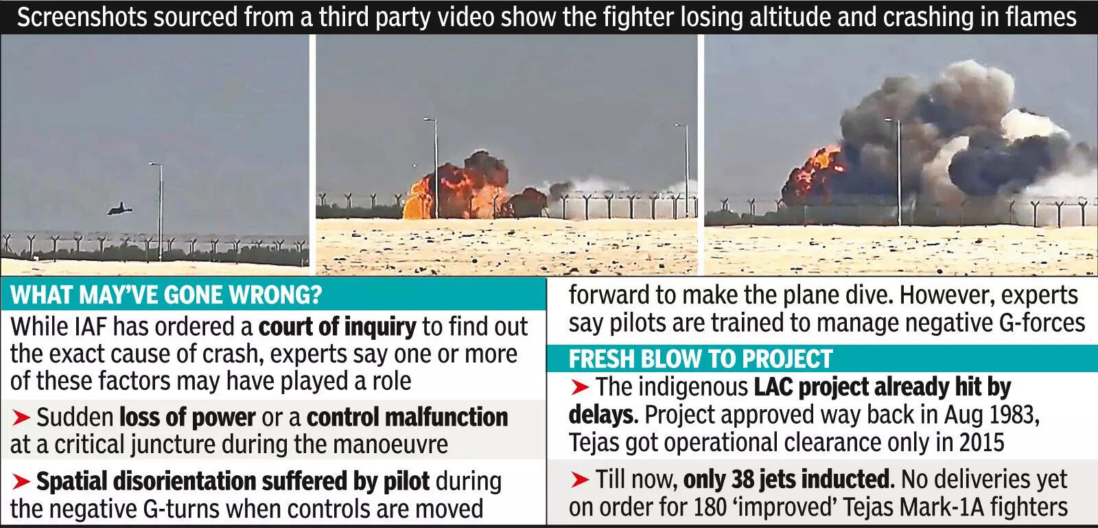 - What happened: Tejas Mark-1 crashed during low-altitude aerobatics
